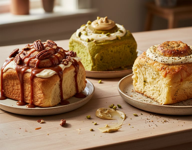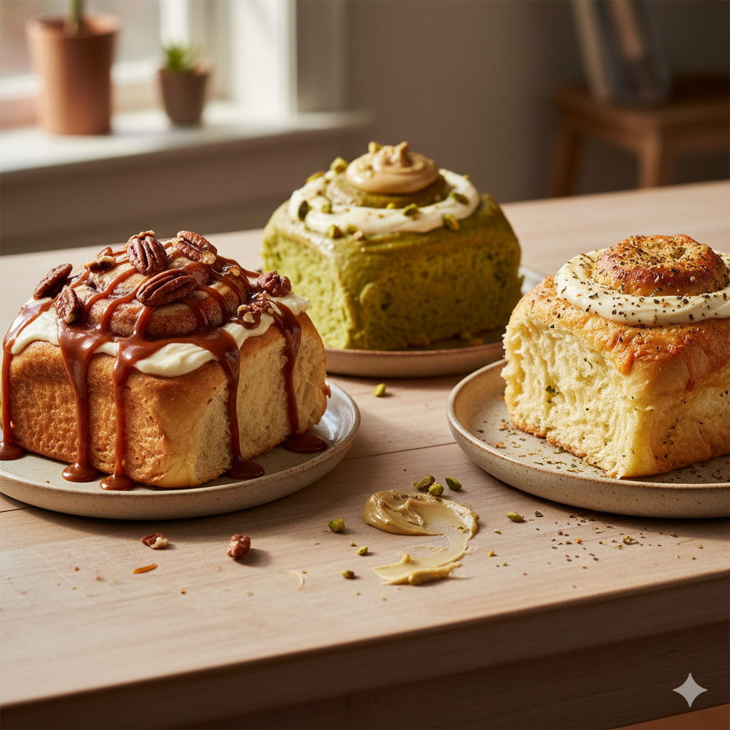 Roles suaves, grandes y bien rellenos. Dulces y salados, hechos con masa madre e ingredientes reales.