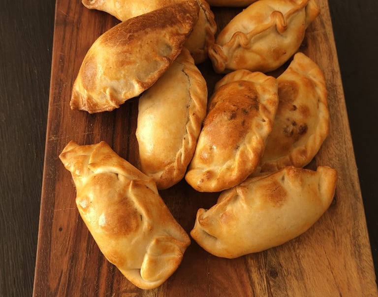 Empanadas artesanales con repulgues que identifican cada sabor y alfajores hechos como manda la tradición.