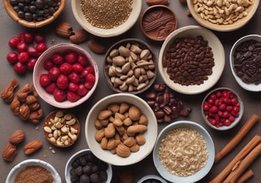 Mantequilla, cacao, frutas, nueces y chocolate auténtico